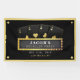 Bannière de fête d'enterrement de vie de garçon sur le thème du poker noir et or avec quatre as et un panneau à lettres. Personnalisez-le avec les détails de l'événement du marié.