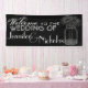 Un signe bienvenu d'amusement de saluer vos invités de mariage, partie d'une sélection et ensemble du mélange Co-ordinating. Un noir et un gris de charbon de bois colorent l'arrière - plan d'effet de tableau, avec illustrations au trait de deux pots de maçon que chacun rempli de marguerites donne la bannière à un contact rustique. La typographie simple utilisée fait à ceci un choix moderne et à la mode.