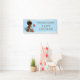 Bandeau bleu prince baby shower vintage, élégante et personnalisée. Une belle illustration vintage d'un garçon afro-américain adorable et mignon avec une couche bleue stylée et une couronne d'or. Il parle sur un vieux téléphone rouge rétro vous disant qu'il est en route ! Il tient une petite valise bleue et son ours en peluche excentrique se penche dessus - il est tout emballé et prêt pour son arrivée ! L'arrière - plan est une jolie bordure motif aux chevrons bleus et blancs et un texte personnalisable gris. Si vous avez besoin d'aide pour customiser votre produit, veuillez me contacter par l'intermédiaire de mon magasin et je serai heureux de vous aider. J'ai des produits correspondants dans mon magasin.