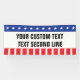 Bannière Stars and stripes avec votre texte personnalisé a de la place pour 2 lignes. Bande bleue avec étoiles blanches en haut, rouge sur bandes blanches en bas. Attention obtenir bannière pour les affaires ou l'événement.
