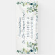 La bannière de félicitations parfaite pour un fiançailles mariage, Elégant et moderne eucalyptus vert thème. Beau feuilles d'eucalyptus aquarelle. Design de style script moderne félicitations design avec des noms monogrammes. Parfait pour les fêtes de fiançailles ou les réceptions de mariage.