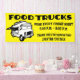 Super hardi Food Trucks bannière publicitaire. Banner est parfait pour faire connaître à la communauté de venir soutenir votre événement Food Truck. Le design comprend un camion de cuisine blanc et noir. Idéal pour la commercialisation de votre camion alimentaire ou de votre événement de camion alimentaire.