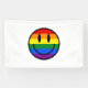 Cette oeuvre colorée présente un visage souriant arc-en-ciel.