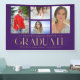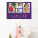 Simple Script Multi Photo Graduation Banner contient quatre de vos photos préférées de votre diplôme d'études supérieures ou secondaires sur le devant avec l'élégant script de calligraphie or moderne "Graduate" superposition. Idéal pour un Graduation Party Simple, élégant et classe. Créé par ©Evco Studio www.zazzle.com/store/evcostudio