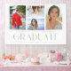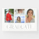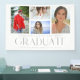 Simple Script Multi Photo Graduation Banner présente quatre de vos photos préférées de votre diplôme d'études supérieures ou secondaires sur le devant avec l'élégant script moderne de calligraphie argentée "Graduate" superposition. Idéal pour un Graduation Party Simple, élégant et classe. Créé par ©Evco Studio www.zazzle.com/store/evcostudio