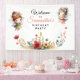 Bannière de fête d'anniversaire de Fairy Garden Girl enchantée. Customisez les détails de votre événement.