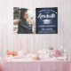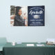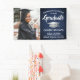 Ajoutez une touche personnalisée élégante aux décorations de la fête de fin d'études supérieures ou secondaires avec cette photo personnalisée Bleu marine, blanc et argent bannière. Le design comprend une casquette de graduation en acier inoxydable brossé, une typographie moderne stylisée, une calligraphie manuscrite de style, et une image du diplômé, comme une photo de haut niveau ou une image de la cérémonie de début. Veuillez noter que l'argent est de couleur grise imprimée, pas de feuille métallique. Ce signe de fête est une façon élégante de célébrer la journée spéciale. Félicitations au diplômé !
