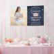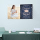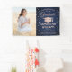 Ajoutez une touche personnalisée élégante à une fête de fin d'études à l'université ou au lycée pour elle avec cette bannière personnalisée bleu marine et rose fausse parties scintillant. Le design présente un arrière - plan bleu marine à l'ombre tendance, une casquette de graduation en fausse parties scintillant en or rose girly, une typographie moderne élégante, une calligraphie manuscrite de script et une photo, telle qu'une image ou une photo de haut niveau de la cérémonie de début. Veuillez noter que l'or rose est imprimé en couleur et non en papier métallique ou en parties scintillant. Cette enseigne de fête s'ajoute élégamment aux décorations spéciales du jour. Félicitations au diplômé !