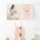 Ajoutez une touche personnalisée élégante à une fête de fin d'études à l'université ou au lycée pour elle avec cette bannière personnalisée rose vif et or fausse parties scintillant. Le design présente un arrière - plan blanc et brillant, une casquette de graduation en faux parties scintillant or tendance, une typographie moderne élégante, une calligraphie manuscrite de style script et une photo, telle qu'une photo principale ou une image de la cérémonie de début. Veuillez noter que l'or est imprimé en couleur et non en papier métallique ou en parties scintillant. Cette enseigne de fête s'ajoute élégamment aux décorations spéciales du jour. Félicitations au diplômé !