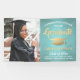 Ajoutez une touche personnalisée aux décorations de la fête de fin d'études secondaires ou collégiales pour elle avec cette photo personnalisée en bleu turquoise, or, et bannière blanche. Le design est composé d'un arrière - plan en acier inoxydable brossé, d'une planche de mortier en feuille d'or, d'une typographie moderne et élégante, d'une calligraphie manuscrite de style et d'une photo du diplômé, comme une image ou une photo de haut niveau de la cérémonie de début. Veuillez noter que l'or est imprimé en couleur et non en métal. Ce signe de fête est une façon élégante de célébrer la journée spéciale. Félicitations au diplômé !