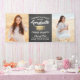 Ajoutez une touche personnalisée aux décorations de la fête de fin d'études secondaires ou collégiales avec ce tableau noir et cette bannière de photo dorée personnalisée. Le design comprend une planche de mortier en feuille métallique d'or, un arrière - plan en damier gris foncé, une typographie moderne élégante, une calligraphie manuscrite de style, et 2 photos du diplômé, telles que des images de haut niveau ou des images de la cérémonie de début. Ce signe de fête est une façon élégante de célébrer la journée spéciale. Félicitations au diplômé !