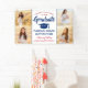 Ajoutez une touche personnalisée aux décorations de fête de fin d'études supérieures ou secondaires avec cette bannière personnalisée 4 photo collage rouge, blanc et bleu. (CONSEIL EN MATIÈRE DE PLACEMENT D'IMAGE : Une façon simple de centrer une photo exactement comment vous voulez est de la rogner avant de la télécharger sur le site Zazzle.) Le design comprend un arrière - plan blanc, une typographie moderne moderne rouge et bleu, une calligraphie manuscrite de style script et quatre photos du diplômé, telles que des photos de troisième cycle ou des images de la cérémonie de début. Ce signe de fête est une façon élégante de célébrer la journée spéciale. Félicitations au diplômé !