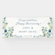 La bannière de félicitations parfaite pour une fête d'anniversaire. Elégant et moderne eucalyptus thème de la verdure. Beau feuilles d'eucalyptus aquarelle. Design de style script moderne félicitations design avec des noms monogrammes. Parfait pour les fêtes et réceptions. Monogramme avec nom de couple. Design populaire.