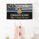Cette conception comprend un drapeau de la police avec des rayures noires et blanches, ainsi qu'une fine bande bleue. Une excellente façon de féliciter la nouvelle académie de police diplômée. Customiser avec le nom de l'agent d'application de la loi diplômé en or. Célébrez cette étape importante dans le style!