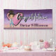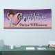 Signe de félicitations moderne pour les fonctionnalités avec un médecin mignon qui a obtenu son diplôme de l'école de médecine. Elle a un grand cœur et aime prendre soin des autres. Polices de caractères de style typographique. Monogramme avec le nom du diplômé. Couleurs violettes, roses, noires et bleues. Aspect pailleté or faux. Félicitations au nouveau MD - professionnel de la médecine.