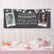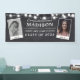 Félicitations à la grad ! Célébrez l'occasion avec cette jolie bannière de graduation photo craie avec des lumières à cordes et de l'espace pour 2 photos.