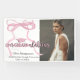 Félicitations Coquette Bow Photo Graduation. Cette conception comprend un texte de script avec espace pour une photo de la grade. Je dis, Con-grad-ulations. Ajoutez tous vos propres détails et votre propre photo.