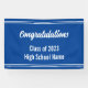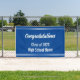 Cette bannière de graduation bleu et blanc profond a un modèle texte que vous pouvez modifier pour féliciter votre classe de graduation de votre école. Comme on l'a vu, la ligne supérieure est un script blanc qui dit "Félicitations". La deuxième ligne peut être changée en année de classe si nécessaire. La dernière ligne concerne le nom de l'école. Tout le texte peut être modifié ou supprimé.