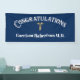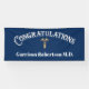 Félicitez votre médecin ou un autre professionnel de la santé favori avec un élégant signe de félicitations en or, bleu et blanc. Parfait pour les fêtes de fin d'études célébrées en famille et entre amis. La typographie moderne avec signe de caducée médicale de couleur or. Monogramme avec nom et profession.