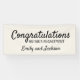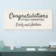 Simple bannière "Félicitations à votre fiançailles" pour la fête de fiançailles. Texte noir (personnalisable avec l'outil de design de Zazzle) sur un arrière - plan crème/blanc (également personnalisable). Personnalisé avec les noms du couple nouvellement engagé.