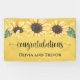 Félicitations sont de rigueur pour le merveilleux couple qui vient de s'engager à se marier. De beaux tournesols à l'aquarelle avec une typographie script moderne. La bannière de félicitations parfaite pour votre célébration de fête. Dessin floral rustique jaune doré. Monogrammé avec les noms.