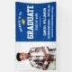 Célébrez votre grade avec cette superbe bannière avec sa photo, son texte personnalisé et un faux bonnet de graduation en or fixé contre un arrière - plan bleu (changer facilement de couleur). Généreuse en taille et de haute qualité, cette bannière moderne, mais simple et classique fait la déclaration parfaite pour votre soirée de remise de diplômes.