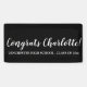 Félicitations noir et blanc personnalisé script personnalisé nom de texte, école et classe année de diplôme Banner. Idéal pour la maternelle, l'école primaire, le collège, l'école secondaire et collégiale. Design moderne minimaliste et élégant. Texte blanc entièrement personnalisable sur couleur arrière - plan noir. Toutes les couleurs sont modifiables. Grand cadeau pour les diplômés, les diplômés. Consultez le reste de la collection pour obtenir des cadeaux de remise de diplômes, des faveurs, des fournitures de fête et des articles de décoration supplémentaires.