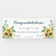La bannière de félicitations parfaite pour les mariages et les événements qui ont un thème de verdure eucalyptus. Beau tournesol floral aquarelle et feuilles d'eucalyptus. Design de style script moderne félicitations design avec des noms monogrammes. Parfait pour les fêtes de fiançailles ou les réceptions de mariage.