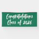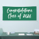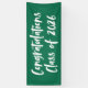 Bannière de remise des diplômes moderne avec "Félicitations à la promotion 2023" en écriture pinceau blanc sur fond vert ou de la couleur de votre choix. La bannière verte de remise des diplômes est conçue pour se coordonner avec notre collection de remise des diplômes Abstract Brushstrokes.