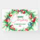 Cette bannière de Noël personnalisable est parfaite pour ajouter une touche personnelle à vos célébrations de vacances. Le design est orné d'une couronne verte luxuriante ornée de billes rouges et bleues brillantes, créant un look festif et élégant. Un ruban rouge classique ajoute un accent de fête traditionnel. Au centre, l'accueil courageux et gai "MERRY CHRISTMAS" se démarque, invitant chaleur et joie. En dessous, il y a un espace pour la personnalisation, avec comme exemples "LA FAMILLE MONTGOMERY" et "20XX". Le texte est entièrement personnalisable, vous permettant d'ajouter votre nom de famille, l'année en cours, ou tout message spécial pour rendre cette bannière unique à vous. Idéal pour les familles qui cherchent à rehausser leur décor de vacances ou comme un cadeau personnalisé et réfléchi.