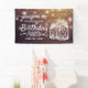Joyeux décor de fête d'anniversaire Modèles de bannières de bienvenue - Élégantes bocaux Mason et lampes à cordes sur Arrière - plan de bois rustique. Tous Les Style De Texte, Couleurs, Tailles Peuvent Être Modifiés En Fonction De Vos Besoins.