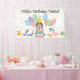 Rendez l'anniversaire de votre Cockapoo/Cavapoo merle chocolat spécial avec notre création adorable sur le thème des chiens portant un chapeau de fête et des ballons colorés. Personnalisez cette bannière de fête d'anniversaire amusante avec le nom de votre chien pour une célébration qui fera battre sa queue de joie !