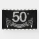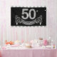 Bannière d'anniversaire 50 ans avec de beaux chiffres diamants argentés et une jolie bannière argent et noir sur fond noir et argent. Vous pouvez changer la couleur du fond, modifier la taille de la bannière et ajouter du texte pour personnaliser cette superbe bannière d'anniversaire 50 ans ! Il s'agit d'une conception imprimée sans vrais diamants, argent, paillettes, etc.