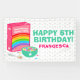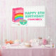 Prévoyez-vous une fête à thème céréalière pour votre enfant? La bannière de fête d'anniversaire Rainbow Cereal, conçue par Enchantfancy Design Company, comprend un bol rempli de lait et de céréales arc-en-ciel, ainsi qu'une boîte de céréales rose avec un arc-en-ciel à l'avant. Les accents étoilés apportent une touche amusante à ce design adorable. Il est parfait pour les petits-déjeuners et les fêtes de pyjama.