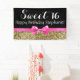 Copie d'étincelle de parties scintillantes d'or avec l'arc de roses indien. Assez bling pour la fille girly de diva de seize ans ! Arrière - plan noir adorable avec l'impression lunatique. Célébrez la fête d'anniversaire de jeune dame dans le style avec cette bannière nommée personnalisée imprimée par coutume.