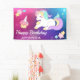 Bannière mignonne de fête d'anniversaire pour une fête d'anniversaire orientée de licorne. Customisez-la avec le nom de votre enfant.