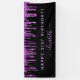 Une bannière pour une fête d'anniversaire girly et glamour de 50ème (ou tout âge). Un arrière - plan noir chic avec d'élégantes gouttes de parties scintillant violet, la peinture goutte à goutte. Le texte : Personnalisez et ajoutez un nom écrit avec une couleur violet clair dans un script de style manuscrit moderne. Modèles pour une date et l'âge 50. Idéal à la fois comme bannière de bienvenue ou comme décor de fête.
