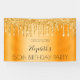 Une bannière pour une fête d'anniversaire girly et glamour de 50ème (ou tout âge). Un arrière - plan à l'allure métallique en faux or avec une élégante parties scintillant en faux or gouttes, peindre l'apparence de dripoing. Le texte : Tentez un nom écrit avec un script de style manuscrit moderne noir. Modèles pour une date et l'âge 50. Idéal à la fois comme bannière de bienvenue ou comme décor de fête.