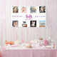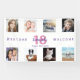 Bienvenue à une fête de 18e anniversaire (ou tout âge) pour une fille, célébrant sa vie avec un collage de 8 de vos propres photos. Photo de famille, amis, animaux de compagnie, vacances. Modèles pour un nom, 18 ans et une date. Avec le texte : Bienvenue (x2) Lettres de couleur rose et violet. Arrière - plan blanc élégant.