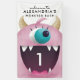 Bannière mignonne de fête d'anniversaire pour la partie de thème du monstre de votre enfant. Il y a une illustration d'un monstre rose avec sa bouche grande ouverte. Vous pouvez ajouter l'âge de l'enfant dans sa bouche. Elle indique le "accueil au coup du monstre d'Alexandre" au dessus de la bannière. Ajoutez le nom de votre enfant ici. Les textes sont facilement en ligne editable.