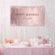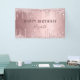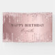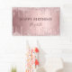 Une bannière pour une fête d'anniversaire girly et glamour. Un rose poussiéreux, un faux arrière - plan rose à l'apparence métallique avec des gouttes de parties scintillant faux, la peinture goutte à goutte. Avec le texte : Joyeux anniversaire. Personnalisez et ajoutez un nom. Le nom écrit avec un script de style moderne écrit à la main. Idéal à la fois comme bannière de bienvenue ou comme décor de fête.