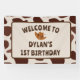 Célébrez le premier anniversaire de votre petit avec cette bannière à thème occidental ! Le texte marron rustique personnalisable est en caractères gras et le design comporte un casquette cowboy mignon. Cette bannière est parfaite pour n'importe quel petit cowboy ou cowgirl. C'est aussi une excellente façon de donner le ton à une fête sur le thème de l'ouest sauvage. Saddle up et préparez-vous pour une randonnée sauvage!
