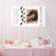 Félicitations ! C'est un moment de fierté lorsque vous ou un être cher traverse la scène pour recevoir un diplôme. Pour une fête de fin d'études, assurez-vous d'ajouter cette bannière de fête de fin d'études élégante. Elle présente un design contemporain avec une photo, Des casquettes de fin d'études impressionnantes flottant au-dessus de l'annonce de fin d'études sur le devant captureront l'essence de l'occasion.