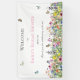 Célébrez et accueillez vos invités de la fête de mariage avec cette bannière de bienvenue estivale et moderne aux fleurs sauvages. Elle présente un champ aux couleurs vives de délicates fleurs sauvages avec des papillons, des bourdons et des coccinelles. Personnalisez tout le texte et l'emplacement des graphiques selon vos besoins.