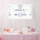 Accueillez vos invités dans un style balnéaire avec cette bannière d'ancres de mariage sur le thème nautique ! Avec des ancres navales élégantes, des cœurs en corde nouée et des textures bleu aquarelle douces, cette bannière personnalisable complète parfaitement votre thème « Elle noue la corde ».