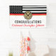 Cette conception comprend un drapeau de pompier avec des rayures noires et blanches, ainsi qu'une fine bande rouge. "Félicitations" et le texte de l'insigne du pompier se trouve au-dessus du nom du pompier, lieutenant ou chef sortant. Fêtez dans le style !