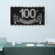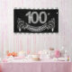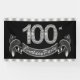 Bannière de fête des 100 ans avec de beaux chiffres diamants argentés et une jolie bannière argent et noir sur fond noir et argent. Vous pouvez changer la couleur du fond, modifier la taille de la bannière et ajouter du texte pour personnaliser cette superbe bannière de fête des 100 ans ! Il s'agit d'une conception imprimée sans vrais diamants, argent, paillettes, etc.