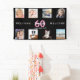 Bienvenue à une fête des 60 ans pour une femme, célébrant sa vie avec un collage de 8 de vos propres photos. Photo de famille, amis, animaux de compagnie, vacances. Modèles pour un nom, âge 60 ans et une date. Avec le texte : Bienvenue (x2) Lettres blanches et roses. Fond noir élégant.