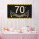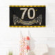 Bannière de fête des 70 ans avec de beaux chiffres diamants dorés et bannière noire et dorée sur fond noir et or. Vous pouvez changer la couleur du fond, modifier la taille de la bannière et ajouter du texte pour personnaliser cette élégante bannière de 70e anniversaire ! Il s'agit d'une conception imprimée sans vrais diamants, paillettes, etc.