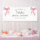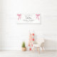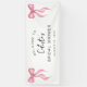 Coquette rose + blanc Bannière de Fête des mariées d'accueil personnalisée. Aquarelle mignonne dans les coins supérieurs. Customisez le libellé avec un nom et une date d'événement. Parfait pour un thème "Elle est en train de nouer". © Kimbellished, LLC